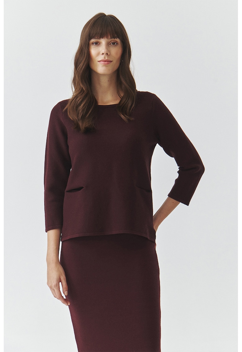 Caracteristici Tip produs: pulover Culoare: visiniu Imprimeu: uni Material: poliester