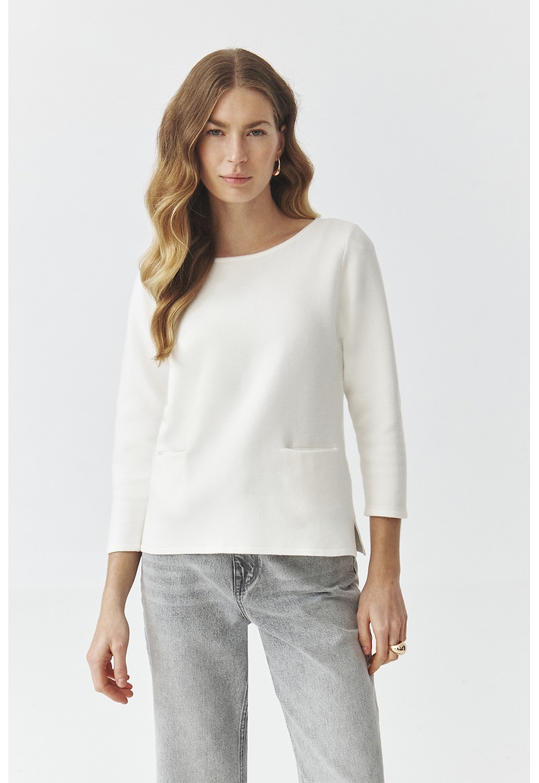 Caracteristici Tip produs: pulover Culoare: alb murdar Imprimeu: uni Material: poliester