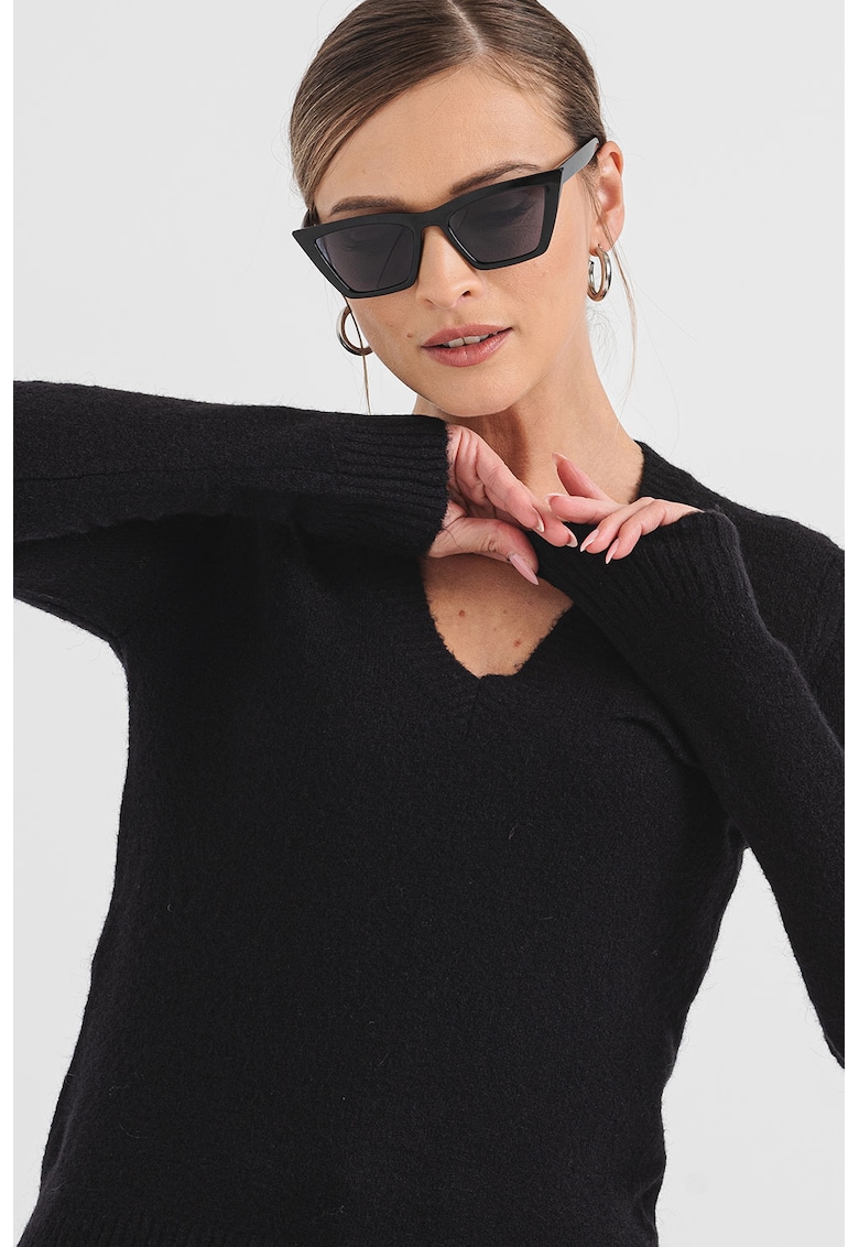 Caracteristici Tip produs: pulover Culoare: negru Imprimeu: uni Material: acril Model: in v Lungime maneca: maneca lunga Compozitie Exterior: 47% acrilic