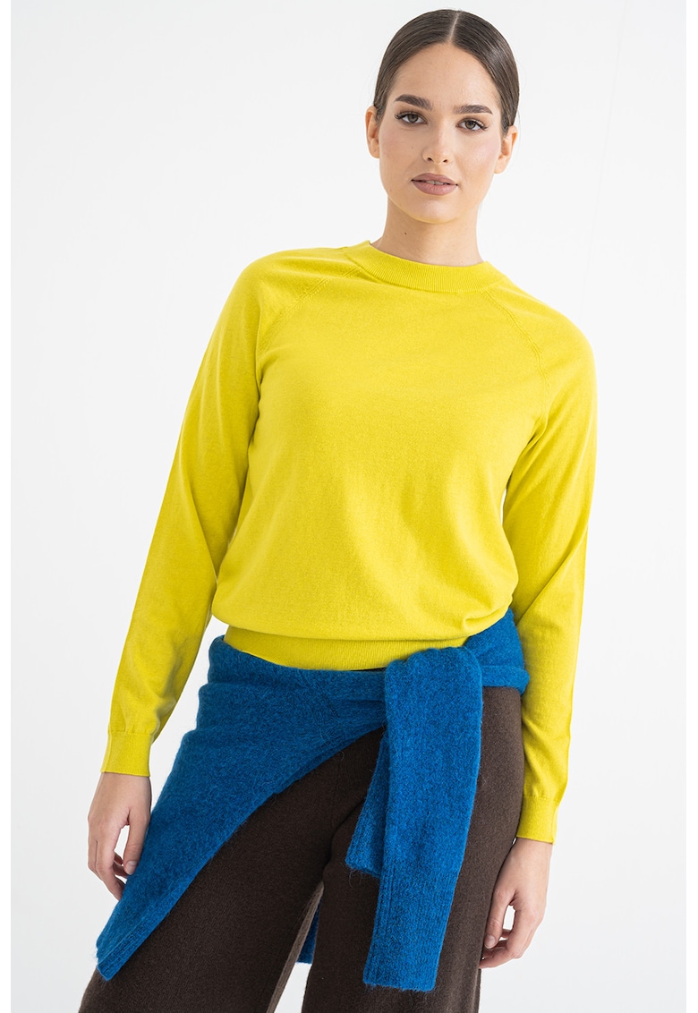 Caracteristici Tip produs: pulover Culoare: galben sofran Imprimeu: uni Material: bumbac