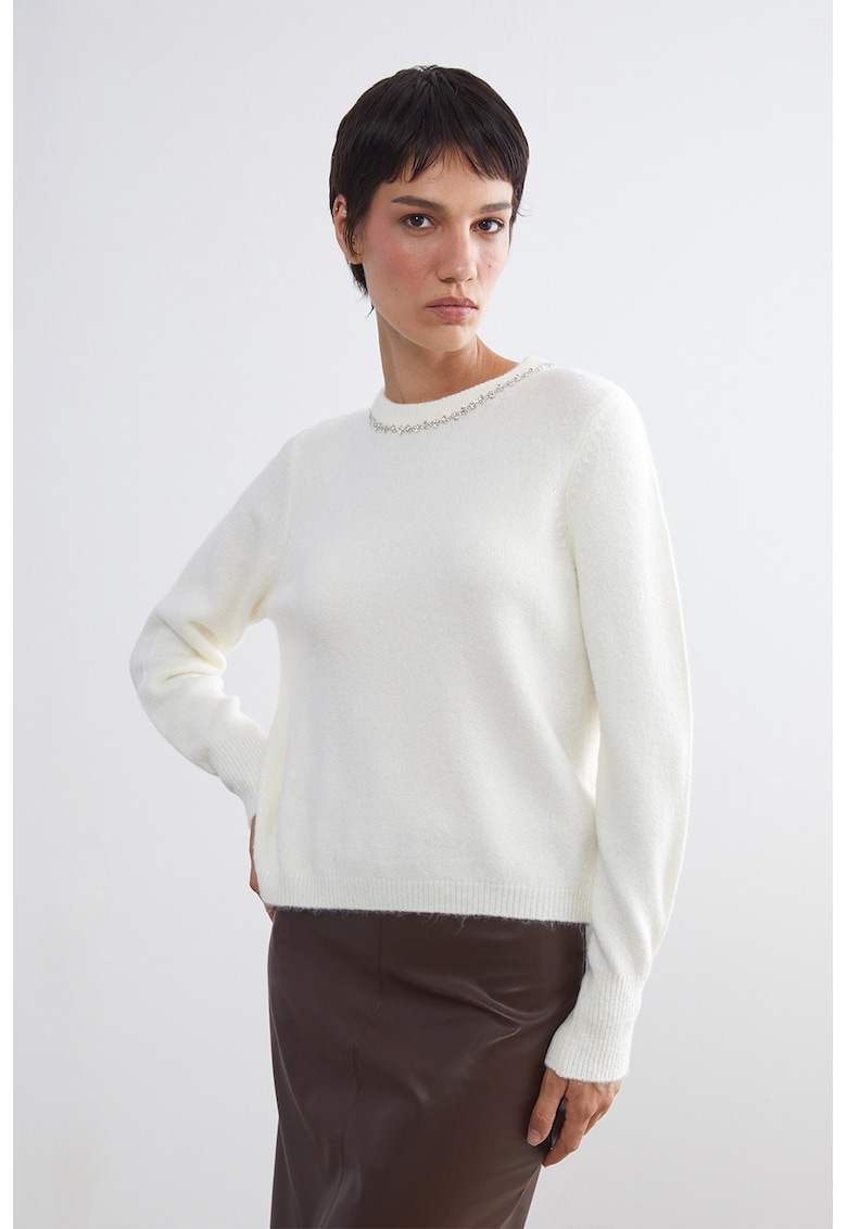 Caracteristici Tip produs: pulover Culoare: alb fildes Imprimeu: uni Material: sintetic