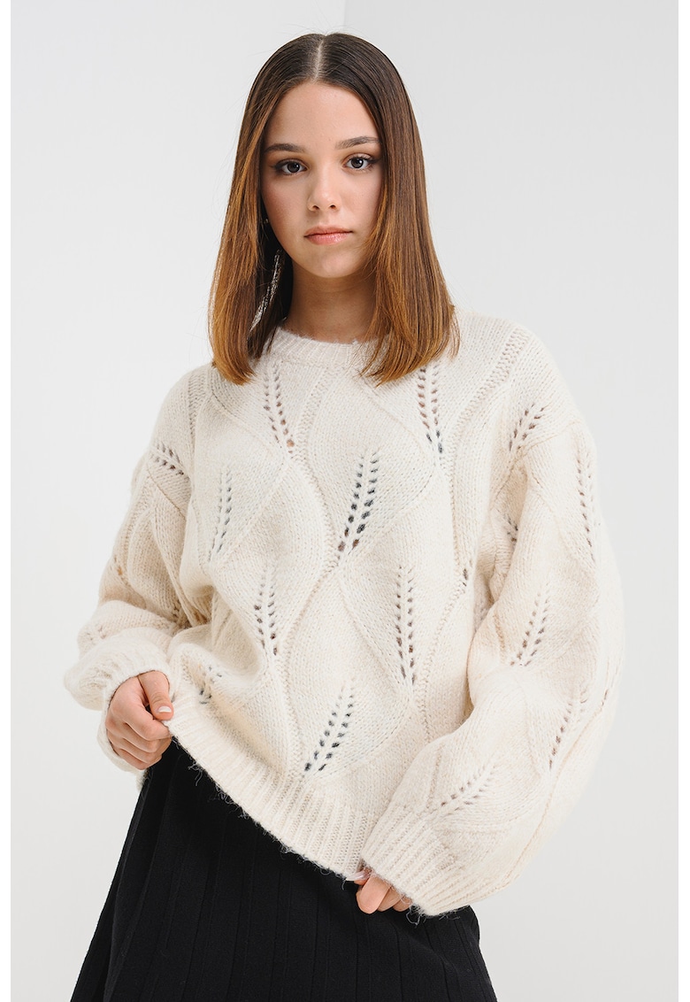 Caracteristici Tip produs: pulover Culoare: alb fildes Imprimeu: uni Material: sintetic