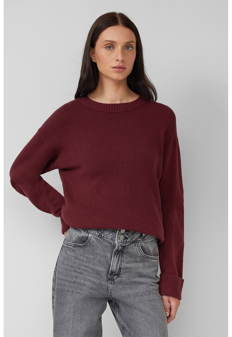 Caracteristici Tip produs: pulover Culoare: visiniu Imprimeu: uni Material: sintetic