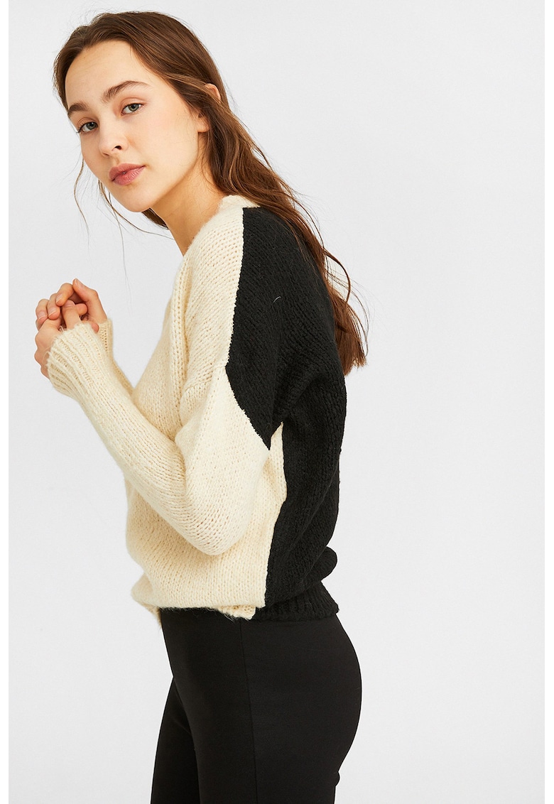 - acril Model: decolteu la baza gatului Croiala: regular fit Sistem inchidere: fara inchidere Lungime maneca: maneca lunga Detalii: 2 culori Compozitie Exterior: 80% acrilic