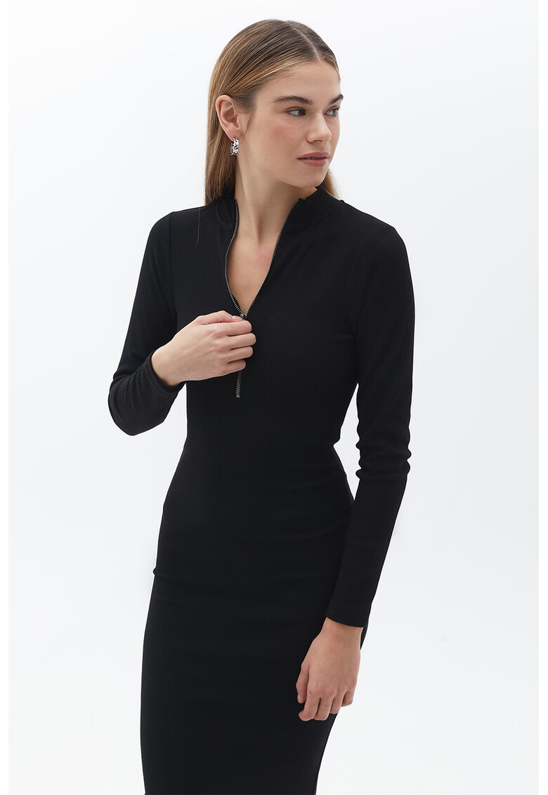 - viscoza Imprimeu: uni Croiala: bodycon Lungime: midi Guler: mediu Lungime maneca: maneca lunga Detalii: fenta cu fermoar Sistem inchidere: fara inchidere Compozitie Exterior: 64% poliester