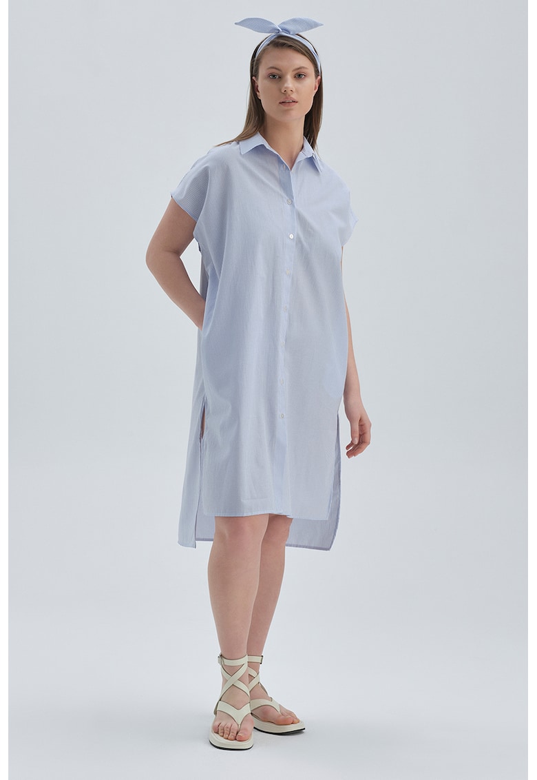 - bumbac Imprimeu: uni Croiala: asimetric Lungime: midi Guler: clasic Lungime maneca: maneca scurta Sistem inchidere: nasturi Compozitie Exterior: 60% bumbac