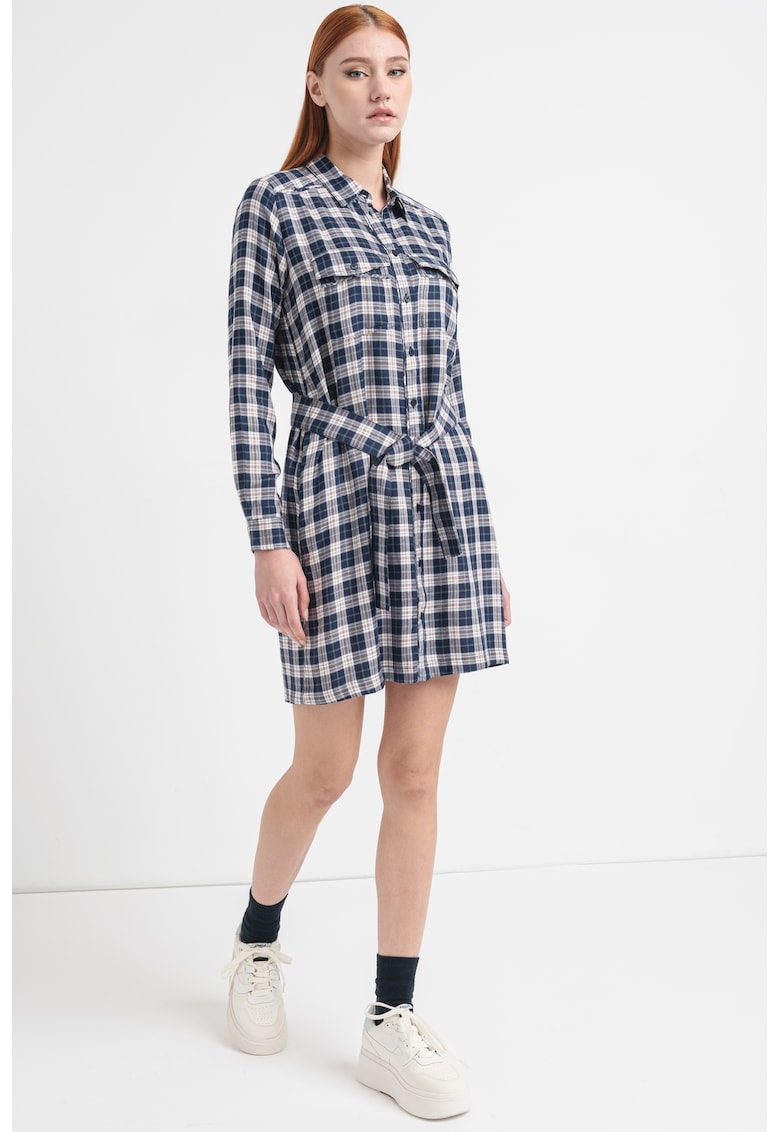 - bleumarin Stil: casual Material: viscoza Imprimeu: carouri Croiala: dreapta Lungime: scurta Guler: ascutit Lungime maneca: maneca lunga Sistem inchidere: nasturi Compozitie Exterior: 100% viscoza Info model Modelul poarta un produs de marimea S. Marimi model: 180 cm inaltime
