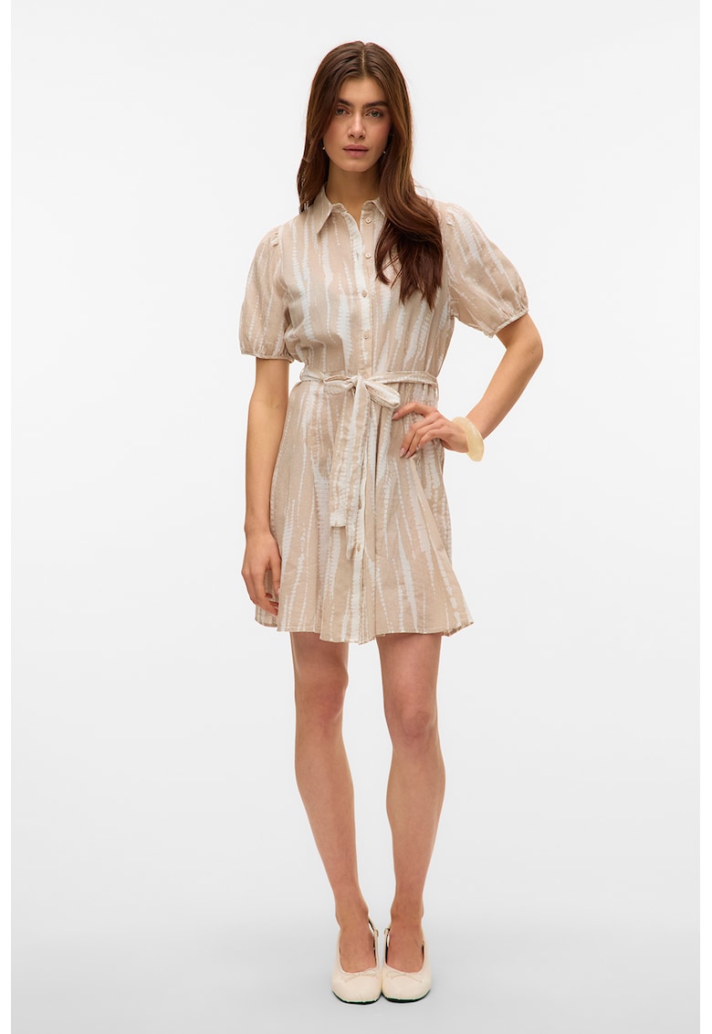 - maro nisip Stil: casual Material: bumbac organic Imprimeu: dungi Croiala: in a Lungime: scurta Maneci: usor bufante Lungime maneca: maneca scurta Sistem inchidere: nasturi
