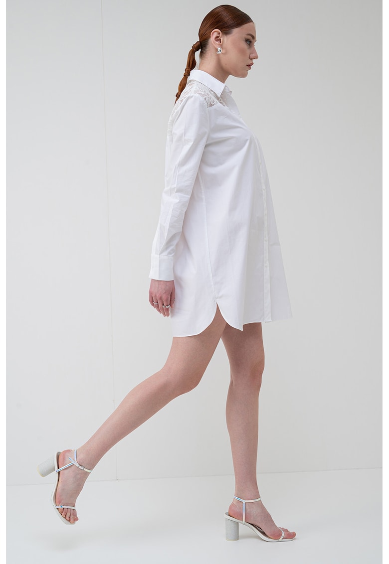 Caracteristici Culoare: alb optic Stil: casual Material: bumbac organic Imprimeu: uni Croiala: dreapta Lungime: scurta Guler: ascutit Lungime maneca: maneca lunga Sistem inchidere: nasturi Compozitie Exterior: 100% bumbac organic Info model Modelul poarta un produs de marimea S. Marimi model: 180 cm inaltime