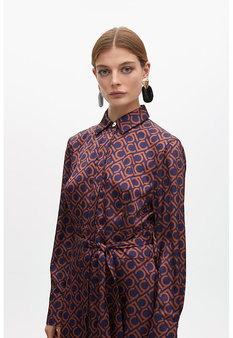 - indigo Stil: casual Material: poliester Imprimeu: logo Croiala: in a Lungime: lunga Guler: fixat cu nasturi Lungime maneca: maneca lunga Talie: talie prevazuta cu snur Detalii: slit lateral