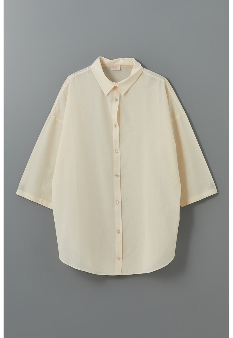 Caracteristici Culoare: bej deschis Stil: de plaja Material: bumbac Imprimeu: uni Croiala: lejer Lungime: scurta Decolteu: guler ascutit Guler: ascutit Maneci: cazute Lungime maneca: maneca lunga Sistem inchidere: nasturi Compozitie Exterior: 100% bumbac
