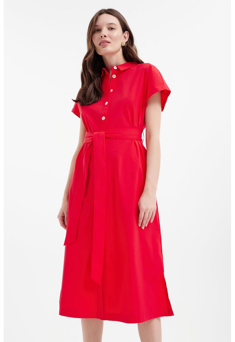 - bumbac Imprimeu: uni Croiala: in a Lungime: midi Lungime maneca: maneca scurta Talie: curea Buzunare: laterale Sistem inchidere: catarama