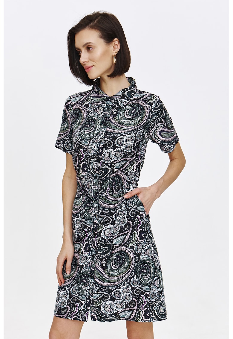 - verde englez Stil: casual Material: viscoza Imprimeu: abstract Croiala: in a Lungime: scurta Guler: clasic Lungime maneca: maneca scurta Talie: elastica Buzunare: 2 oblice Sistem inchidere: nasturi Compozitie Exterior: 100% viscoza