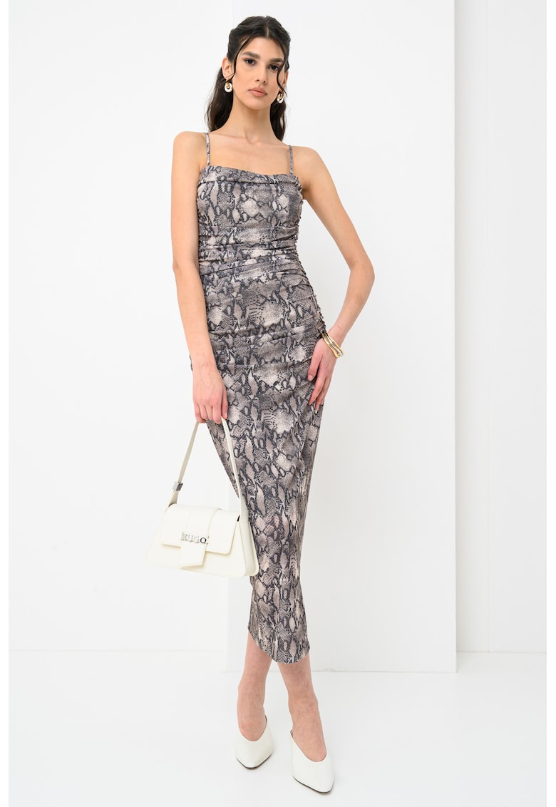 - maro taupe Stil: casual Material: sintetic Imprimeu: animal print Croiala: cambrata Lungime: lunga Decolteu: patrat Barete: inguste Lungime maneca: fara maneca Compozitie Exterior: exterior: 86% poliester