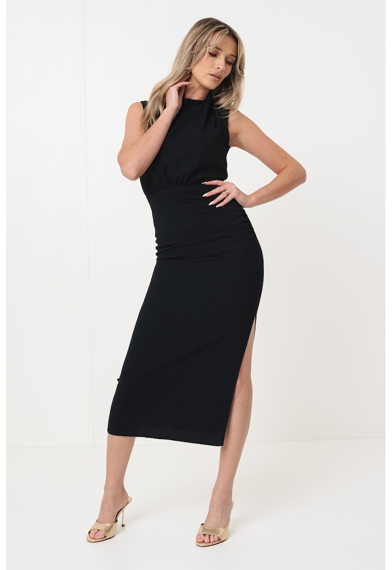 Caracteristici Culoare: negru Stil: casual Material: poliester Imprimeu: uni Croiala: cambrata Lungime: midi Guler: scurt Lungime maneca: fara maneca Detalii: slituri laterale la terminatie Sistem inchidere: fermoar Compozitie Exterior: 100% poliester Info model Modelul poarta un produs de marimea XS/34 EU. Marimi model: 174 cm inaltime