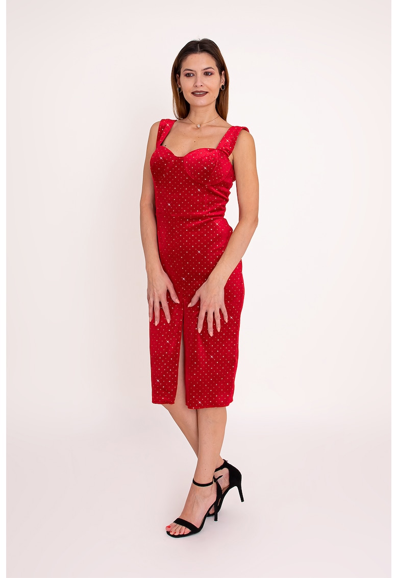 - viscoza Imprimeu: uni Croiala: dreapta Lungime: midi Decolteu: sweetheart Lungime maneca: fara maneca Detalii: slit pe partea din fata