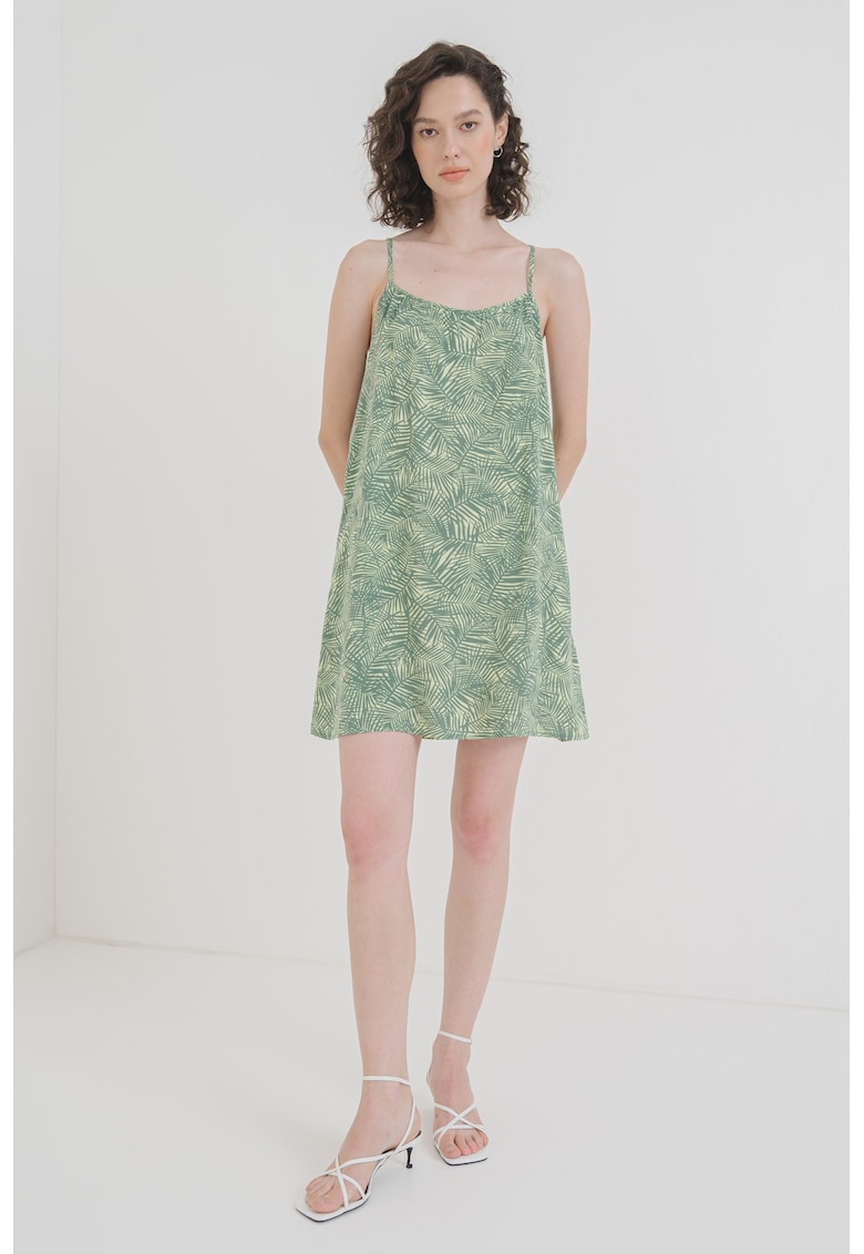 Caracteristici Culoare: verde Stil: casual Material: viscoza Imprimeu: tropical Croiala: dreapta Lungime: scurta Decolteu: patrat Barete: ajustabile Lungime maneca: fara maneca Sistem inchidere: fara inchidere Compozitie Exterior: 100% viscoza lenzing™ecovero™ Info model Modelul poarta un produs de marimea S. Marimi model: 177 cm inaltime