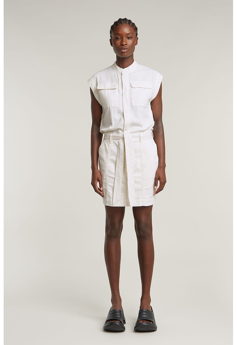 Caracteristici Culoare: alb murdar Stil: casual Material: bumbac Imprimeu: uni Croiala: dreapta Lungime: scurta Decolteu: henley Maneci: foarte scurte Lungime maneca: maneca scurta Buzunare: frontale Compozitie Exterior: 50% bumbac