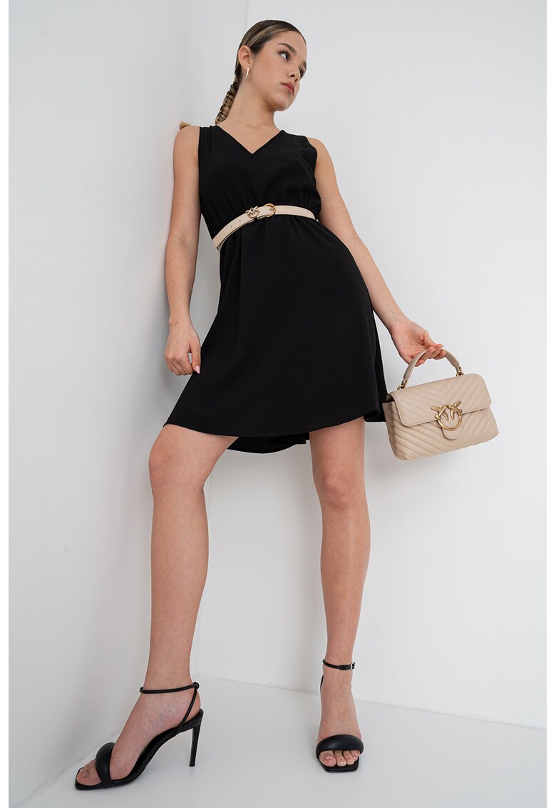 - elastan Imprimeu: uni Croiala: evazat Lungime: scurta Decolteu: in v Lungime maneca: fara maneca Sistem inchidere: fara inchidere Compozitie Exterior: 50% poliester reciclat