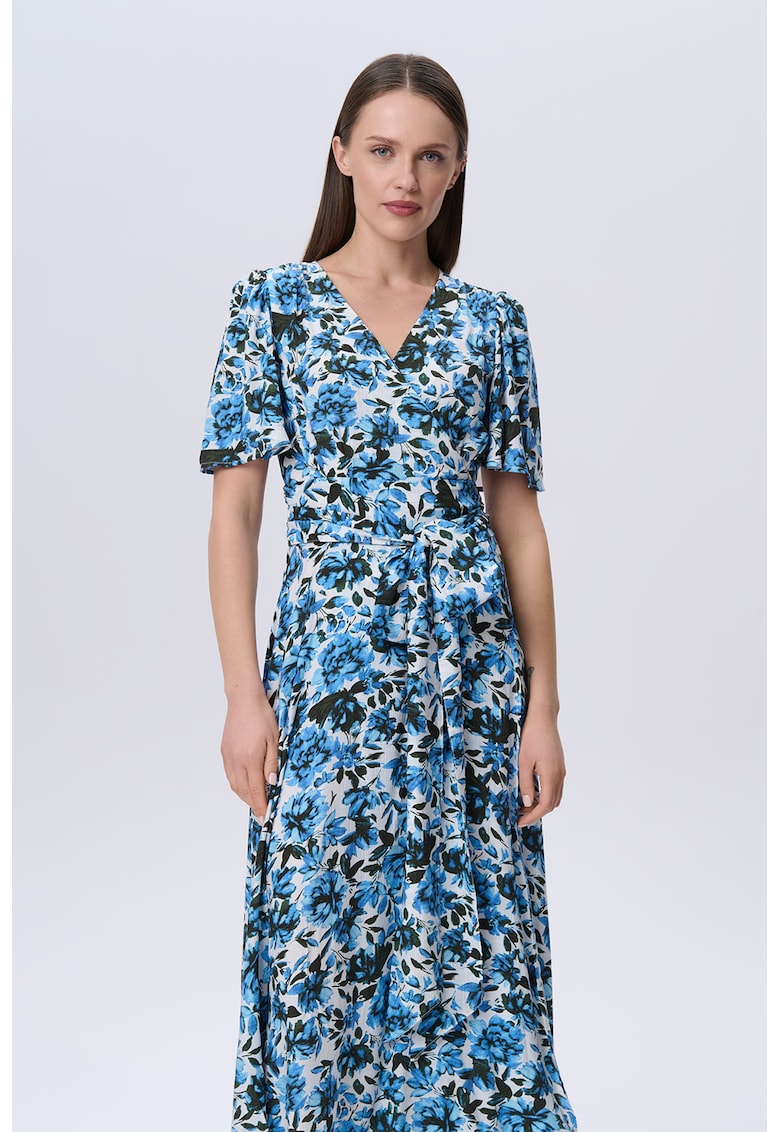 - poliamida Imprimeu: floral Croiala: in a Lungime: midi Decolteu: in v Lungime maneca: maneca scurta Compozitie Exterior: 85% viscoza