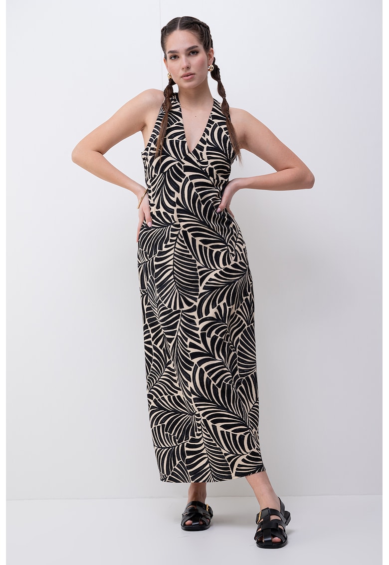 - maro nisip Stil: casual Material: poliester Imprimeu: floral Croiala: evazat Lungime: lunga Decolteu: in v Lungime maneca: fara maneca Sistem inchidere: fara inchidere Compozitie Exterior: 50% poliester reciclat