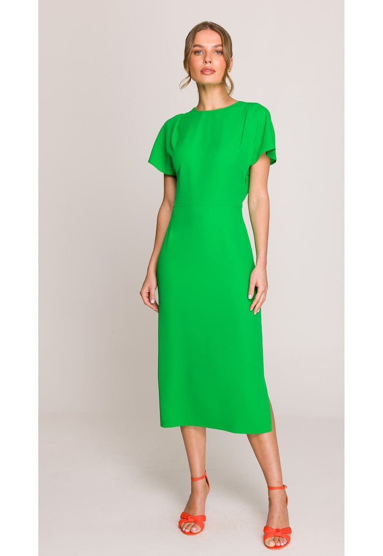 - elastan Imprimeu: uni Croiala: lejer Lungime: midi Decolteu: rotund Lungime maneca: maneca scurta Detalii: produs in europa Compozitie Exterior: 95% poliester