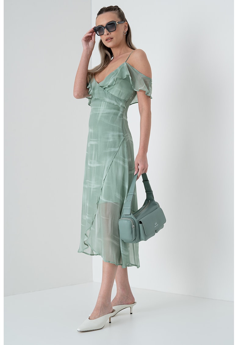 Caracteristici Culoare: verde prafuit Stil: casual Material: viscoza Imprimeu: abstract Croiala: decupaje pe umeri Lungime: midi Decolteu: in v Lungime maneca: maneca scurta Compozitie Exterior: 100% viscoza Info model Modelul poarta un produs de marimea S/2 IT. Marimi model: 174 cm inaltime