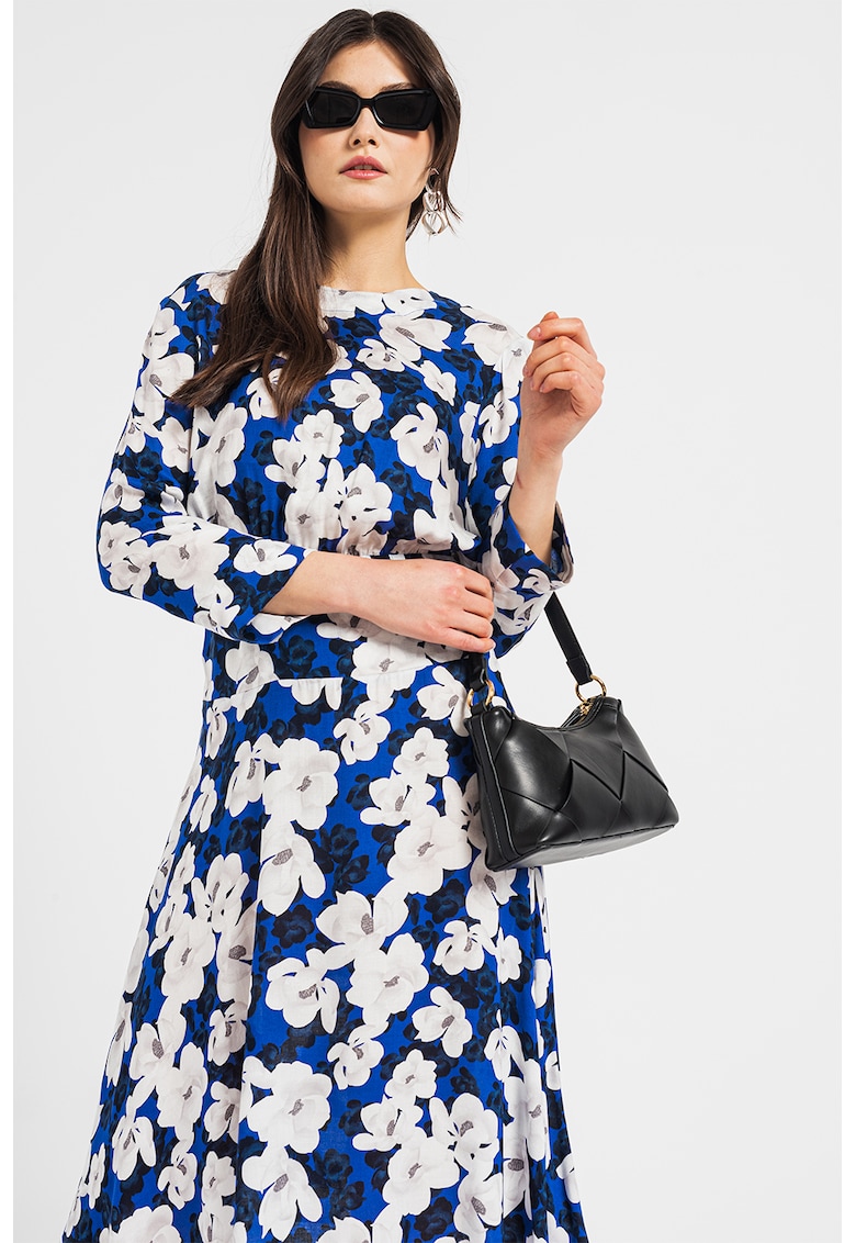 - alb murdar Stil: casual Material: viscoza Imprimeu: floral Croiala: evazat Lungime: midi Decolteu: la baza gatului Lungime maneca: maneca lunga Compozitie Exterior: 100% viscoza Info model Modelul poarta un produs de marimea S. Marimi model: 176 cm inaltime