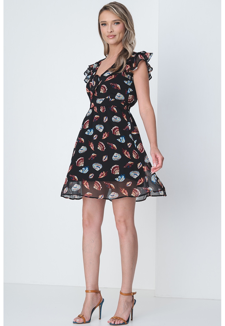 - negru Stil: casual Material: poliester Imprimeu: grafic Croiala: evazat Lungime: scurta Decolteu: in v Lungime maneca: fara maneca Sistem inchidere: fara inchidere Compozitie Exterior: 51% poliester