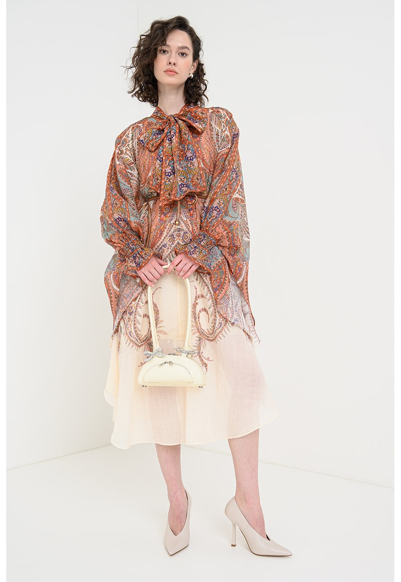 Caracteristici Culoare: multicolor Stil: elegant Material: ramie Imprimeu: grafic Croiala: lejer Lungime: midi Lungime maneca: maneca lunga Compozitie Exterior: 100% ramie Info model Modelul poarta un produs de marimea S/O IT. Marimi model: 177 cm inaltime