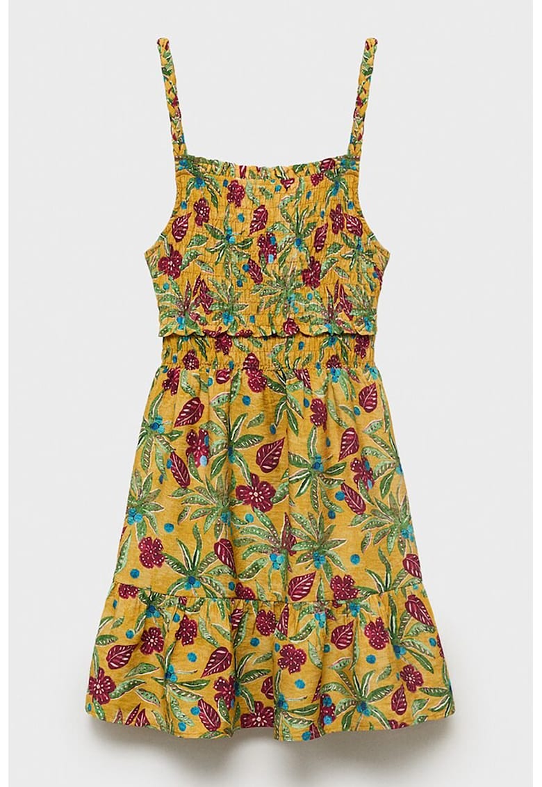 - viscoza Imprimeu: tropical Croiala: evazat Lungime maneca: fara maneca Stil decolteu: patrat Sistem inchidere: fara inchidere Detalii: funda pe partea din spate Colectie: primavara