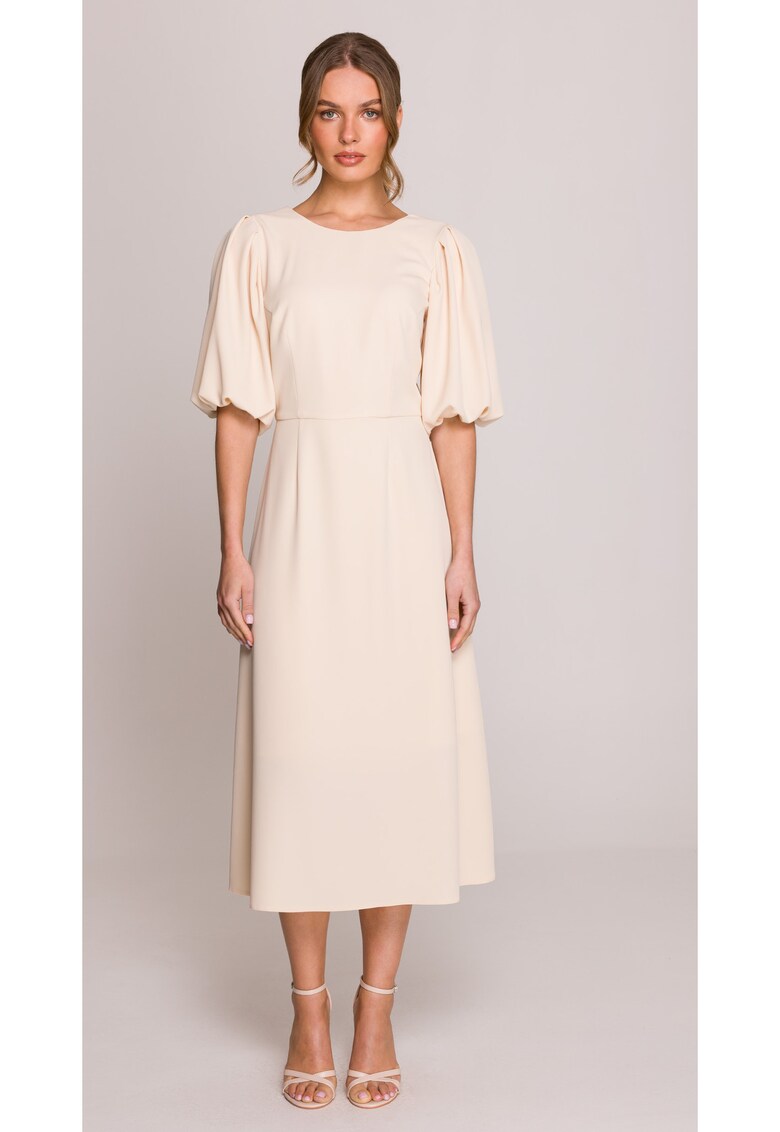- elastan Imprimeu: uni Croiala: lejer Lungime: midi Decolteu: rotund Lungime maneca: maneca medie Detalii: produs in europa Compozitie Exterior: 95% poliester