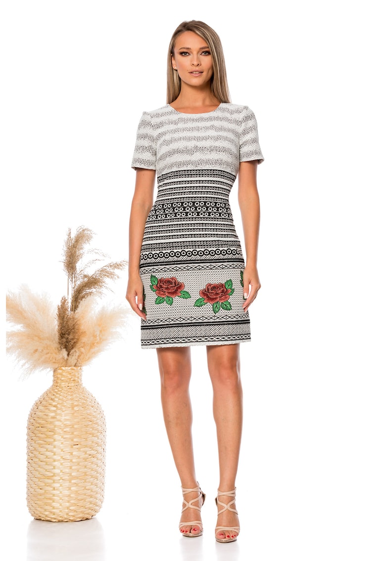 - floral Croiala: cambrata Lungime: scurta Decolteu: rotund Lungime maneca: maneca scurta Sistem inchidere: fermoar Compozitie Exterior: 96 poliester