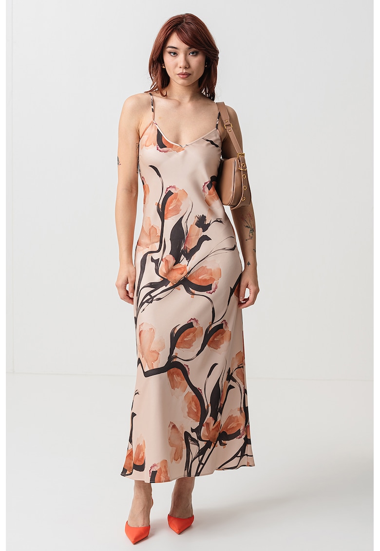 - portocaliu persan Stil: casual Material: poliester Imprimeu: floral Croiala: dreapta Lungime: lunga Decolteu: in v Lungime maneca: fara maneca Compozitie Exterior: 100% poliester Info model Modelul poarta un produs de marimea S/38 IT. Marimi model: 173 cm inaltime