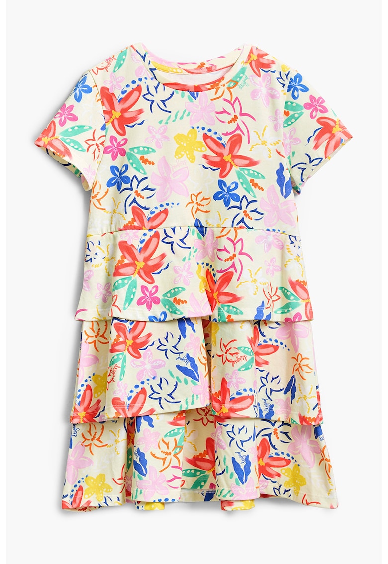 - bej deschis Stil: casual Material: bumbac Imprimeu: floral Croiala: evazat Lungime maneca: maneca scurta Stil decolteu: rotund Sistem inchidere: fara inchidere Colectie: primavara