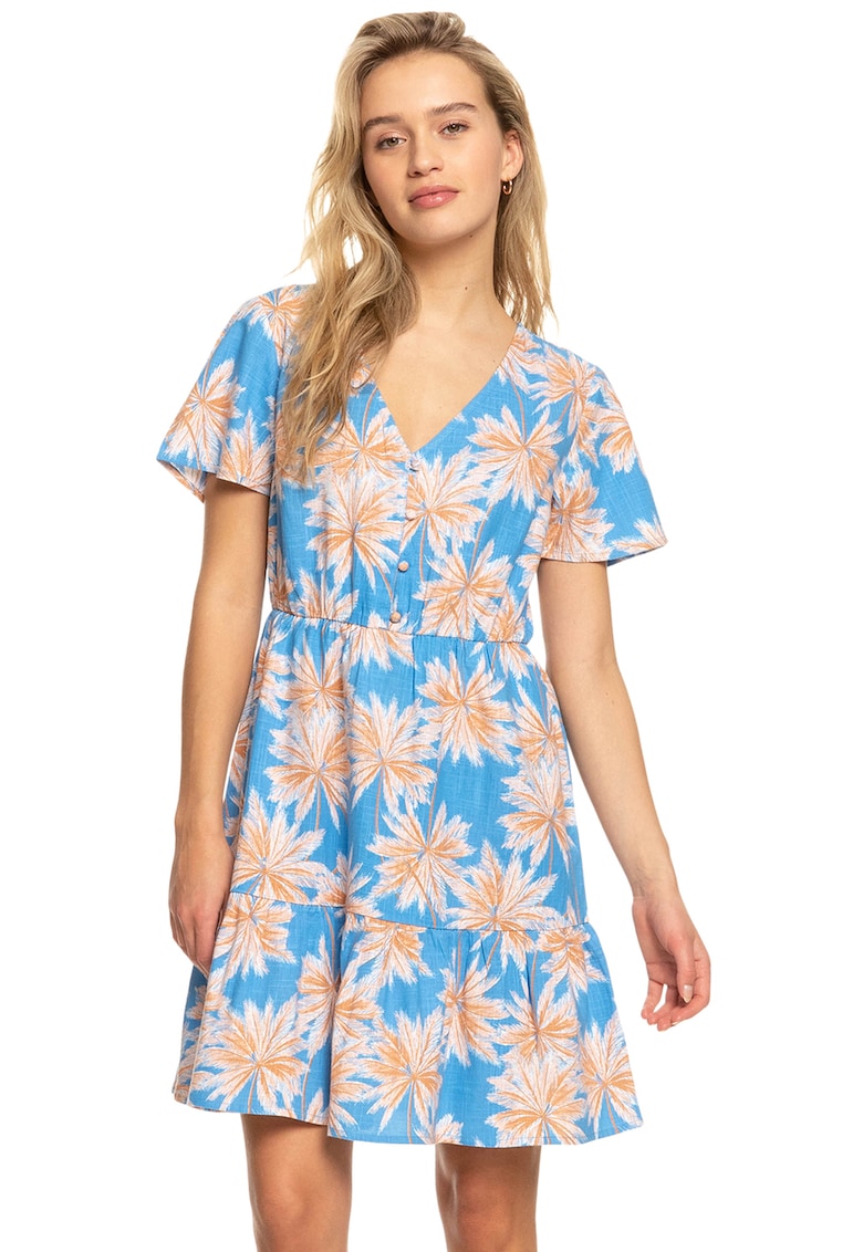 - sustenabil Imprimeu: grafic Croiala: evazat Lungime: scurta Decolteu: in v Lungime maneca: maneca scurta Detalii: fenta cu nasturi Compozitie Exterior: 60% bumbac