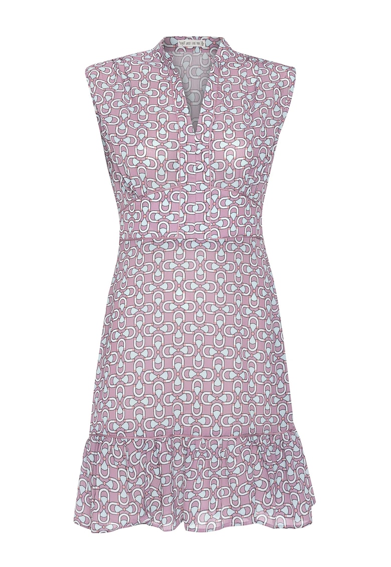 - albastru glaciar Stil: casual Material: sintetic Imprimeu: grafic Croiala: evazat Lungime: scurta Decolteu: en-coeur cu decupaj in v Lungime maneca: fara maneca Detalii: material vaporos Sistem inchidere: fara inchidere Compozitie Exterior: 100% poliester