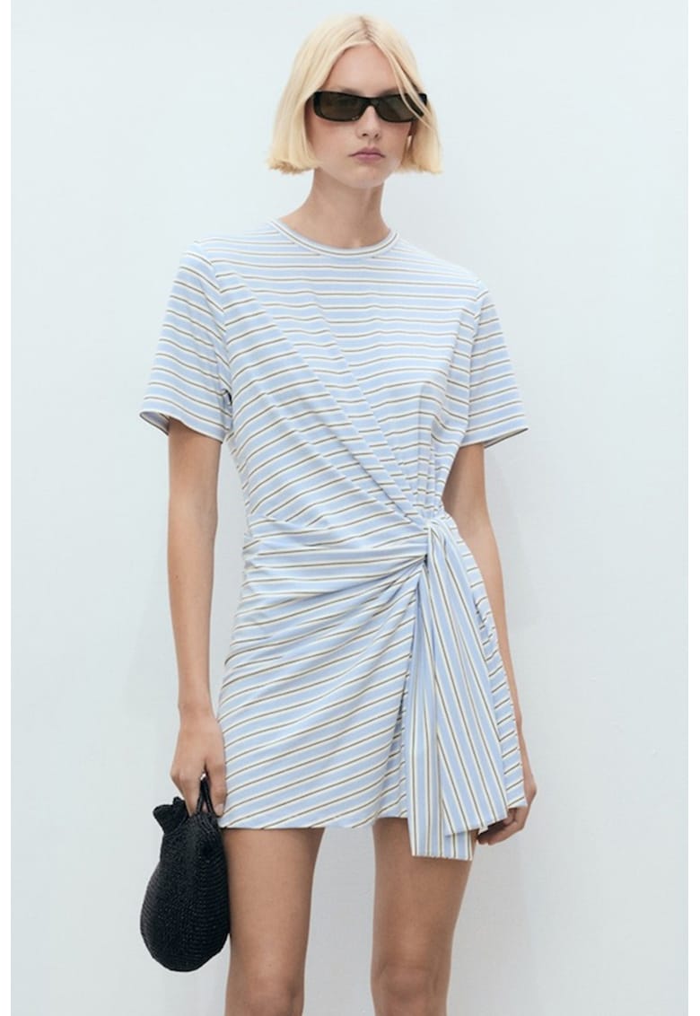 - albastru deschis Stil: casual Material: viscoza Imprimeu: dungi Croiala: dreapta Lungime: scurta Decolteu: la baza gatului Lungime maneca: maneca scurta Compozitie Exterior: 90% viscoza
