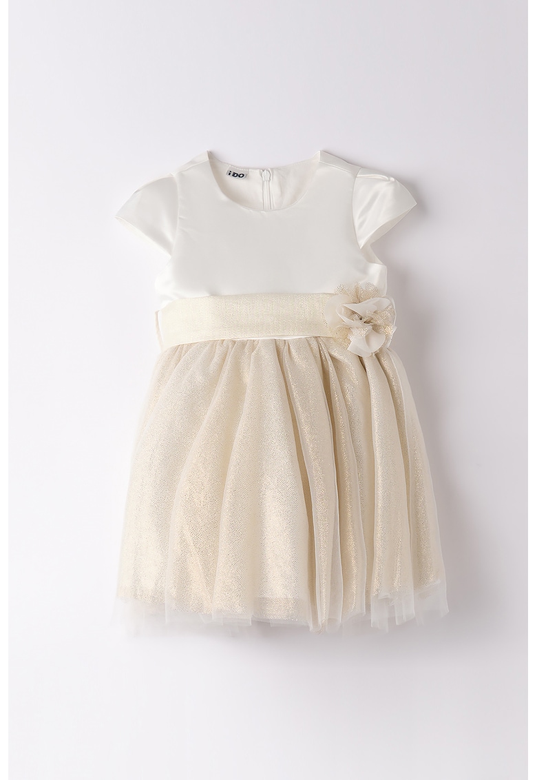 - alb murdar Stil: elegant Material: poliester Imprimeu: uni Croiala: evazat Lungime maneca: maneca scurta Stil decolteu: rotund Detalii: aplicatii cu funda