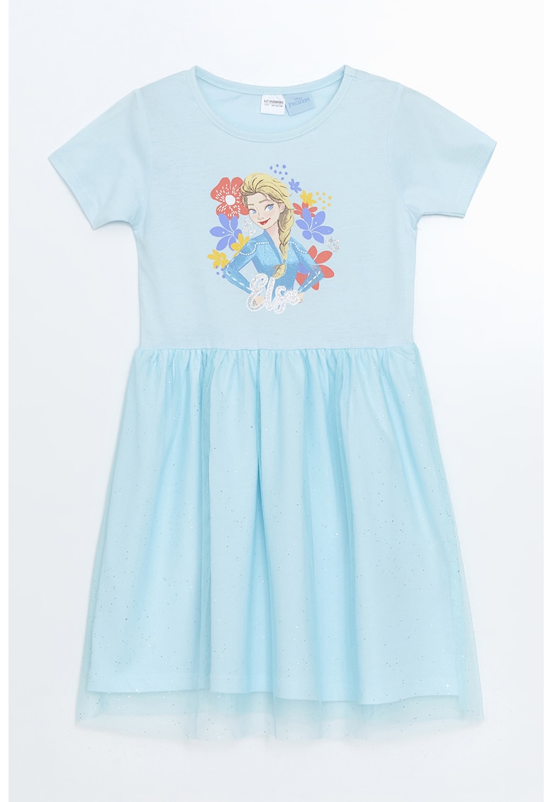 - tul Imprimeu: desene animate Croiala: evazat Lungime maneca: maneca scurta Stil decolteu: la baza gatului Sistem inchidere: fara inchidere Poveste/Personaj: frozen