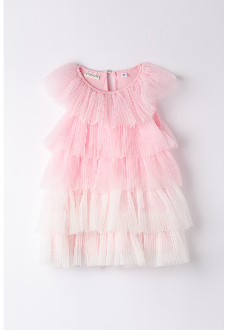 - roz pal Stil: elegant Material: poliester Imprimeu: uni Croiala: evazat Lungime maneca: maneca scurta Stil decolteu: rotund Sistem inchidere: fara inchidere Detalii: aplicatii cu volane Colectie: primavara