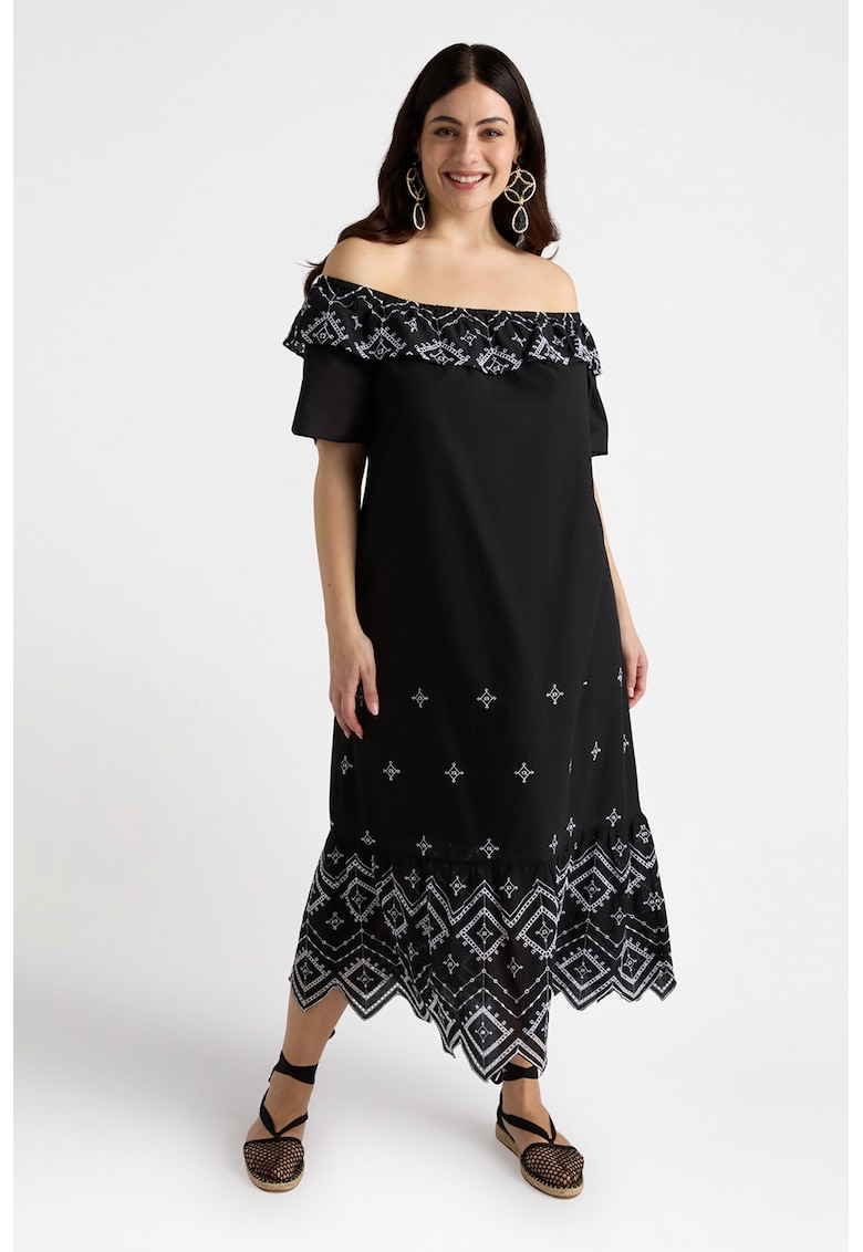 - alb optic Stil: casual Material: bumbac Imprimeu: geometric Croiala: curvy Lungime: midi Lungime maneca: maneca scurta Detalii: acest produs se adreseaza femeilor cu forme pline (plus size). Compozitie Exterior: 100% bumbac