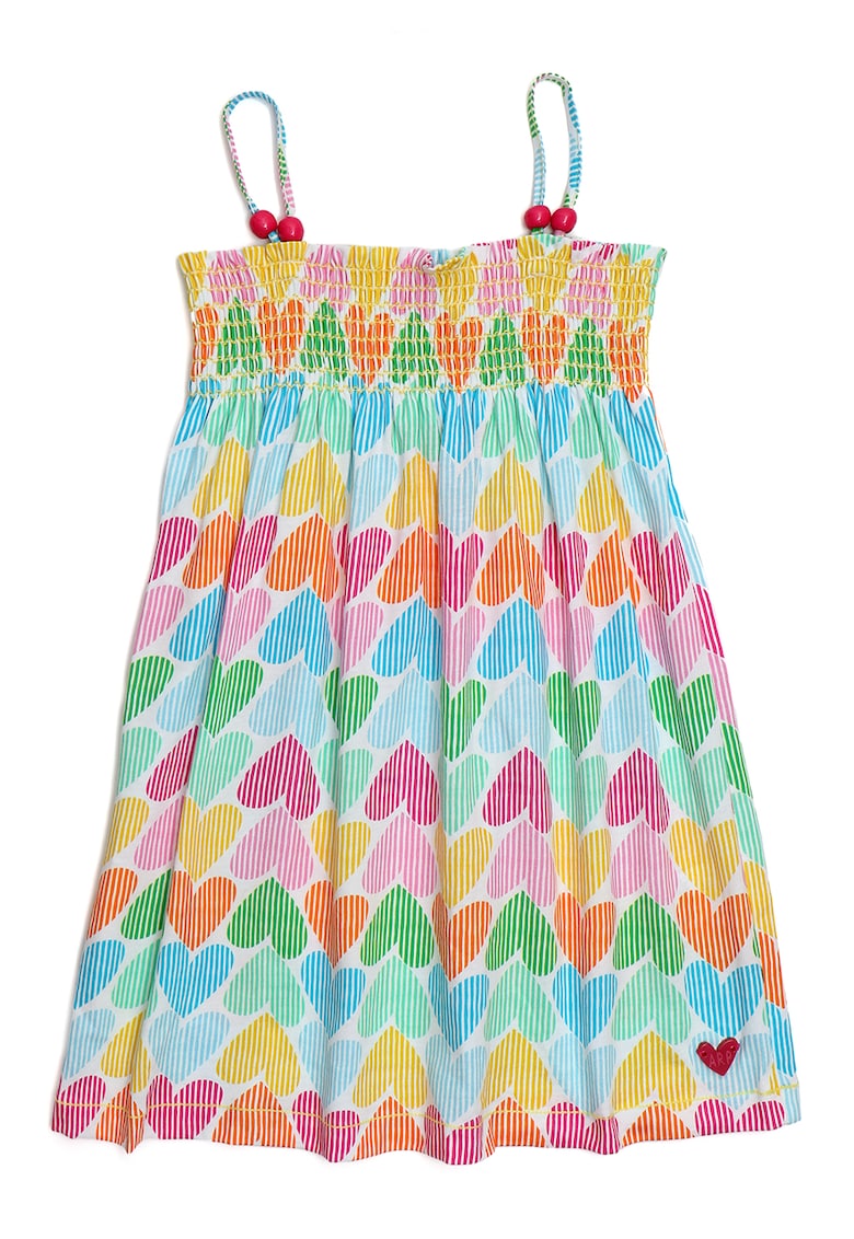 Caracteristici Culoare: multicolor Stil: casual Material: bumbac Imprimeu: inimioare Croiala: evazat Lungime maneca: fara maneca Stil decolteu: patrat Sistem inchidere: fara inchidere Detalii: insertie elastica Colectie: primavara