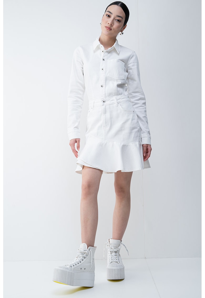- denim Imprimeu: uni Croiala: evazat Lungime: scurta Guler: ascutit Maneci: mansete cu nasturi Lungime maneca: maneca lunga Sistem inchidere: nasturi Compozitie Exterior: 99% bumbac organic