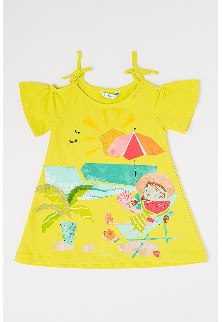 - verde lime Stil: casual Material: bumbac Imprimeu: grafic Croiala: evazat Lungime maneca: maneca scurta Stil decolteu: rotund Colectie: primavara
