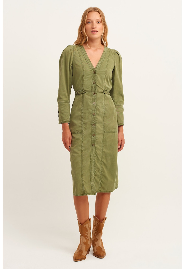 - lyocell Imprimeu: uni Croiala: dreapta Lungime: midi Decolteu: in v Maneci: bufante