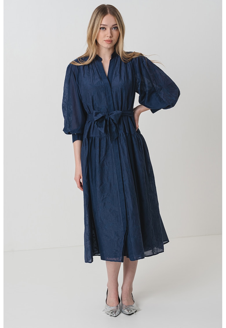 - matase Imprimeu: uni Croiala: petrecuta Lungime: midi Decolteu: cache coeur Lungime maneca: maneca trei sferturi Compozitie Exterior: 70% bumbac