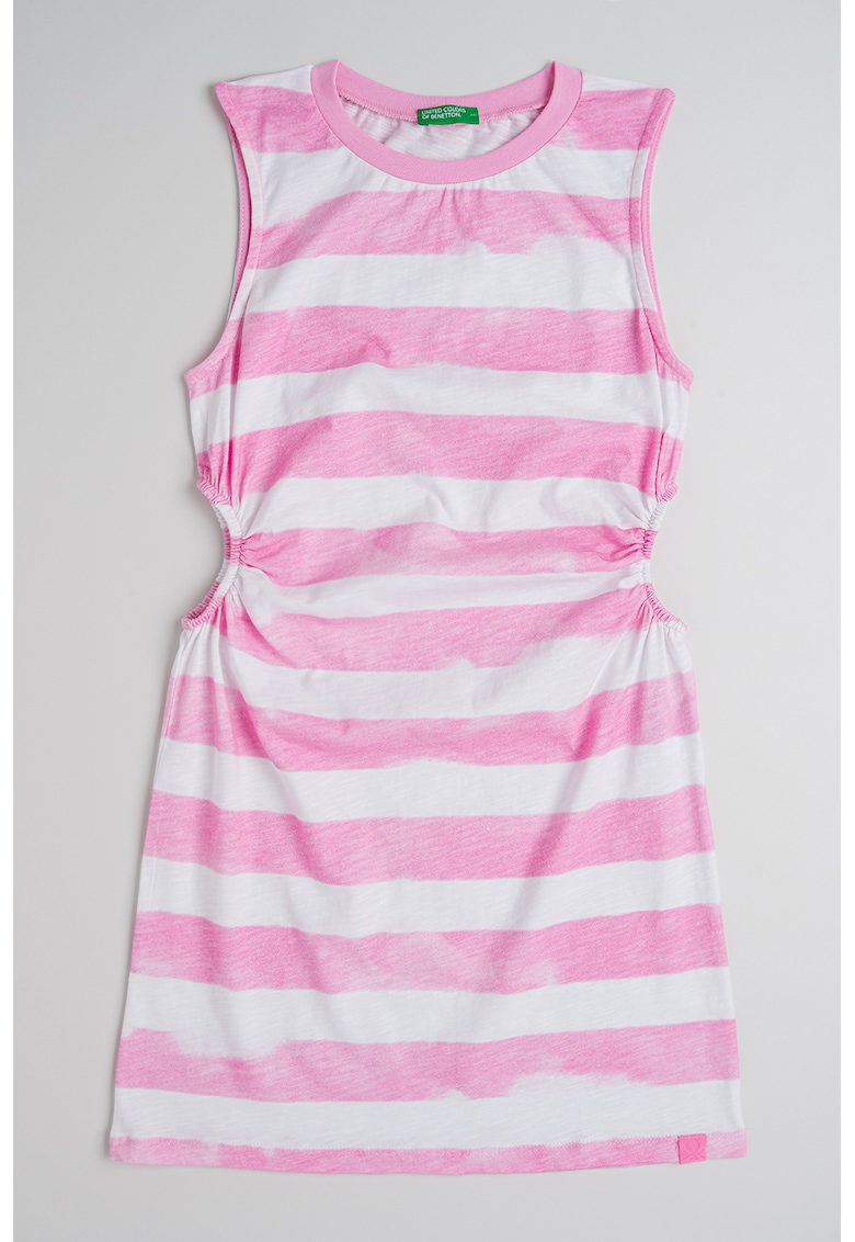 - roz Stil: casual Material: bumbac Imprimeu: dungi Croiala: dreapta Lungime maneca: fara maneca Stil decolteu: la baza gatului Sistem inchidere: fara inchidere Detalii: decupaje in partile laterale Colectie: primavara
