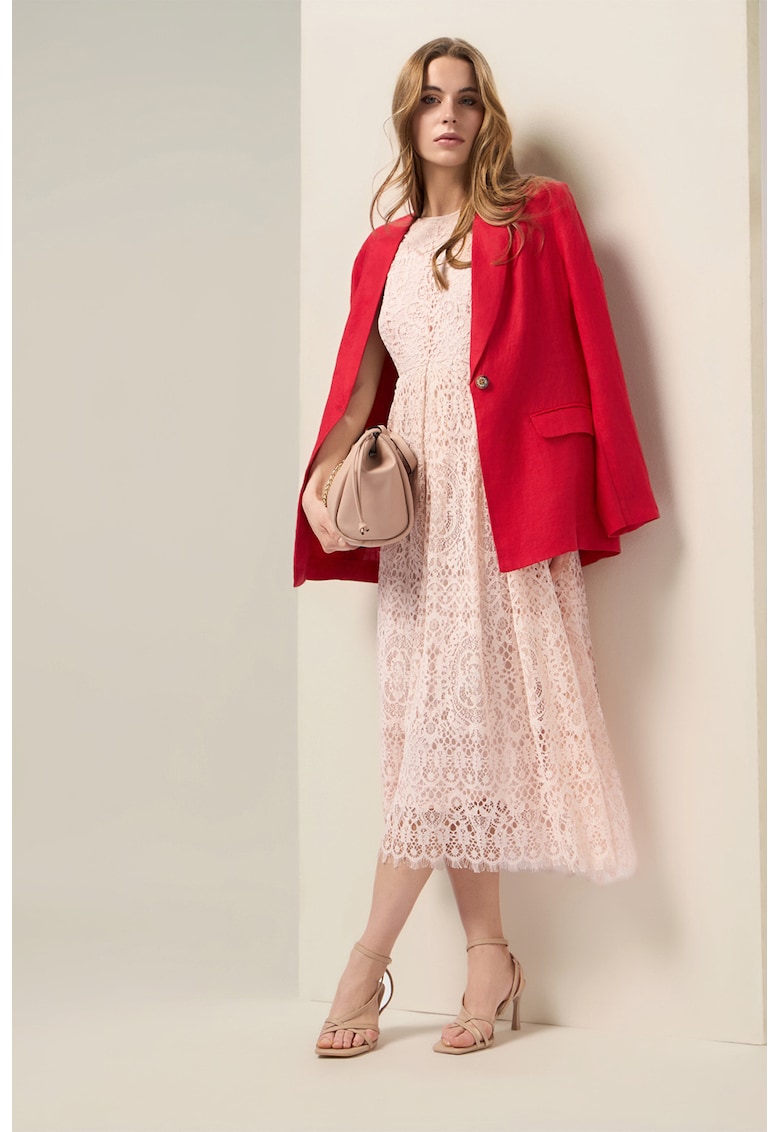 - viscoza Imprimeu: uni Croiala: in a Lungime: midi Decolteu: la baza gatului Lungime maneca: fara maneca Sistem inchidere: fermoar Compozitie Exterior: 50% poliamida