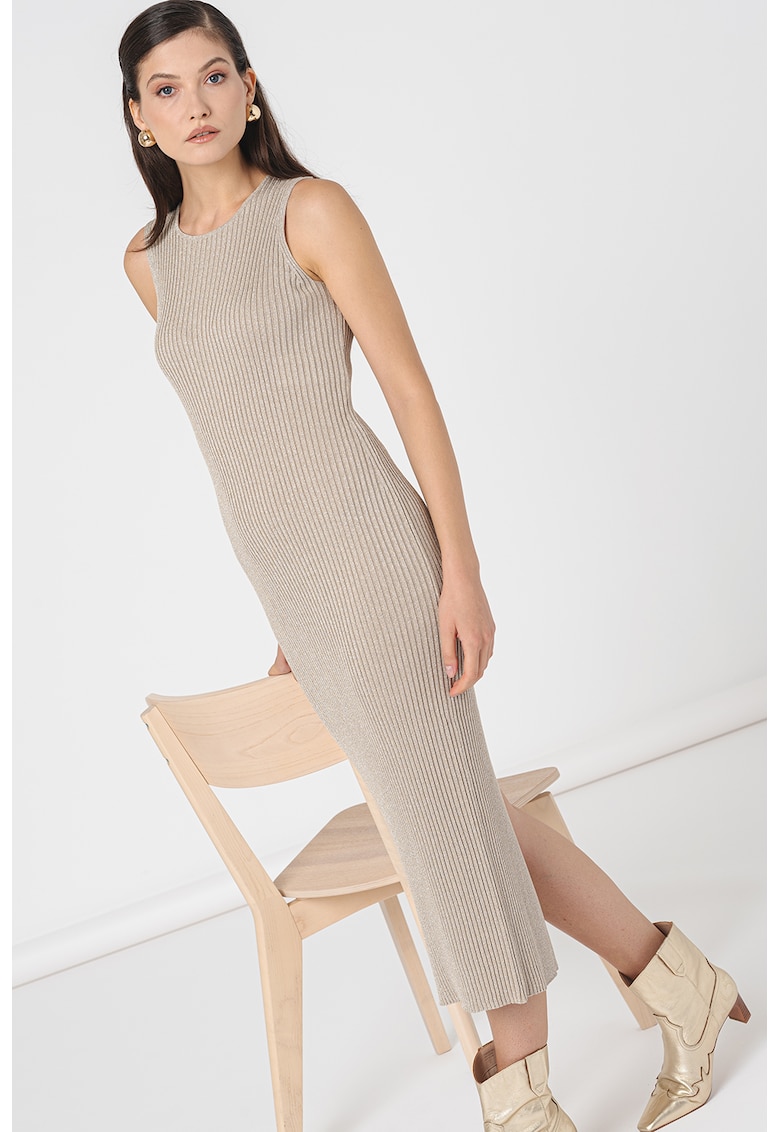 - tricot Imprimeu: uni Croiala: bodycon Lungime: midi Decolteu: la baza gatului Lungime maneca: fara maneca Detalii: slit pe partea din spate